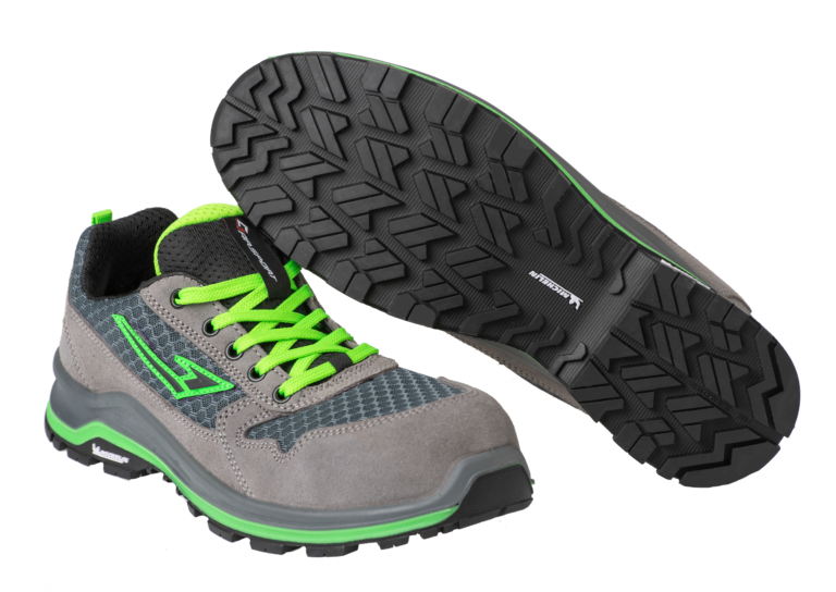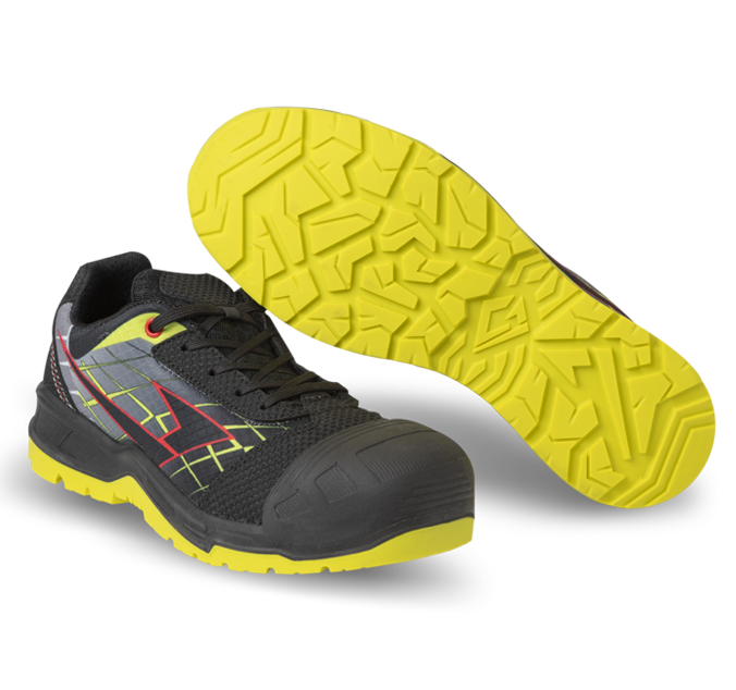 Calzatura da sicurezza in TPU tricolore e intersuola PU. Il design del battistrada di questa calzatura si adatta a varie condizioni di impiego in ambito antinfortunistico: chimico, elettrico e molto altro.