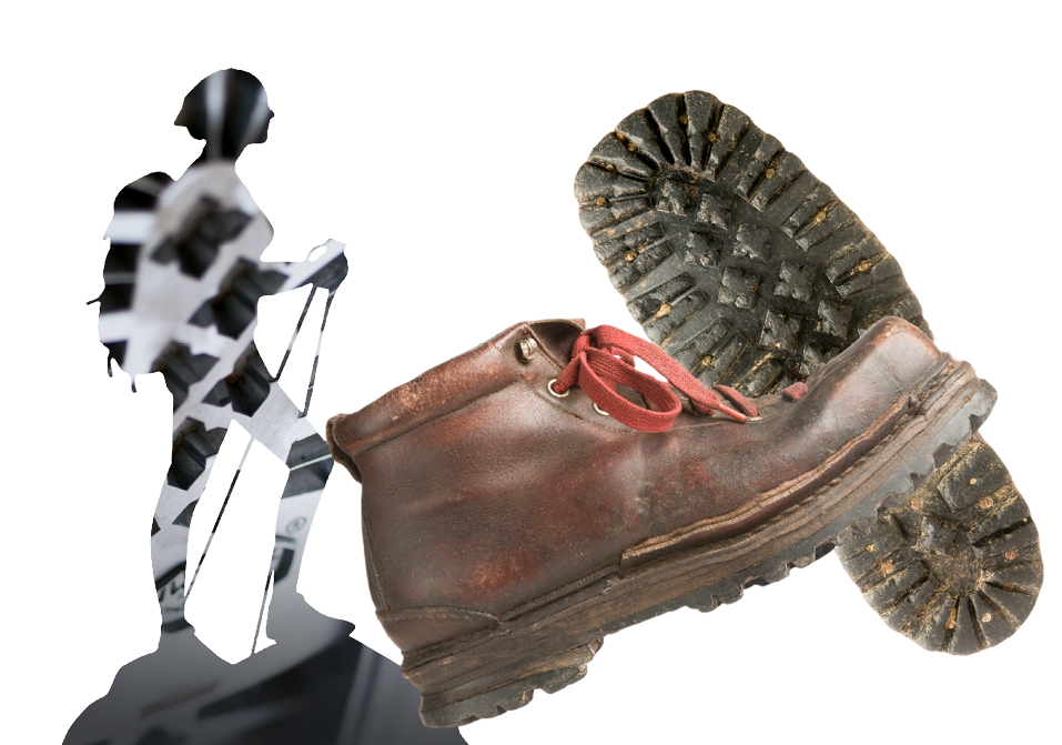 Обувь, которая является символом 60-х годов — это ботинки для трекинга. Их суровое очарование обрастает новыми легендами благодаря достижениям альпинизма и новым открытиям. Ботинки Вальтера Бонатти, ступающие по нетронутому снегу Рувензори или по грязи Ориноко становятся символом для поколений любителей приключений.